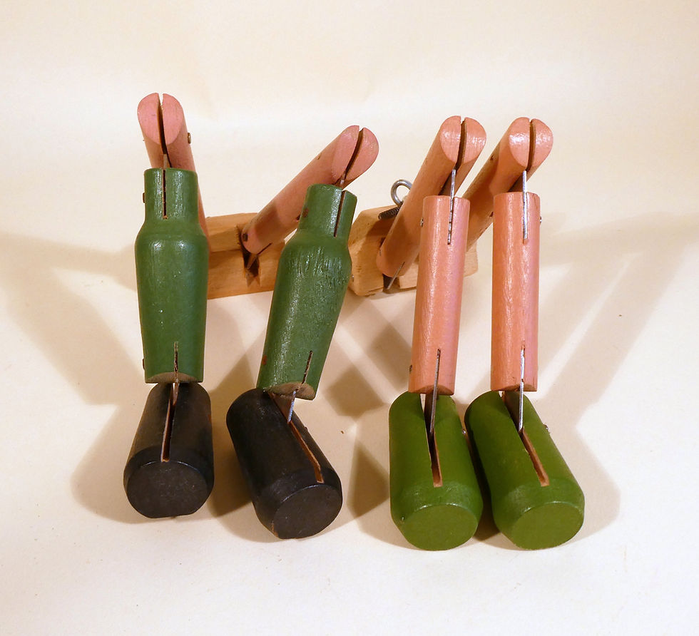 You'll find several clear photos of each puppet with a description noting any remarkable points. All strung puppets are untangled and without knots or ties, unless stated otherwise.