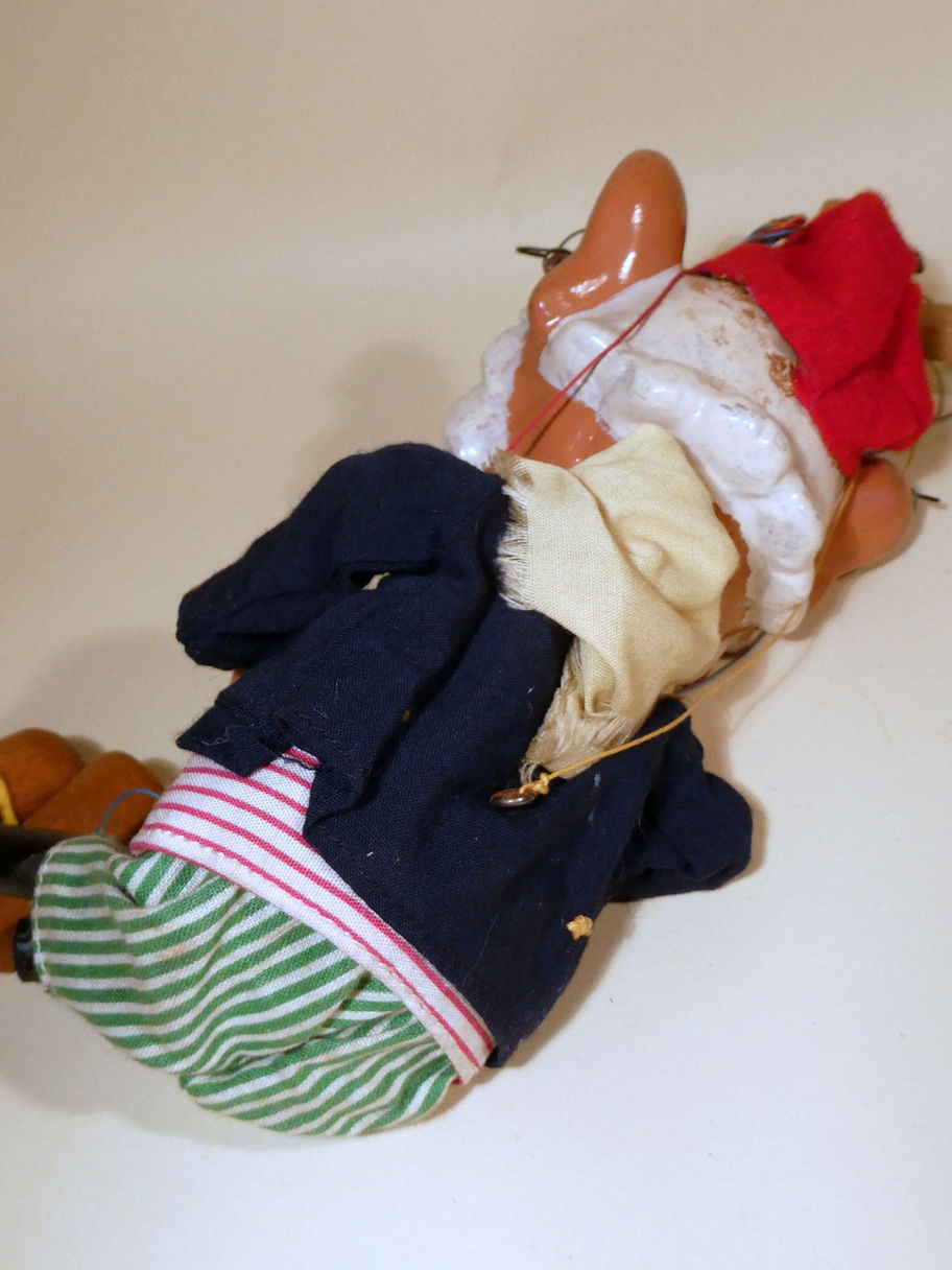 He has a good head with no cracks and wears a soft red felt hat which has slightly come away from the head.