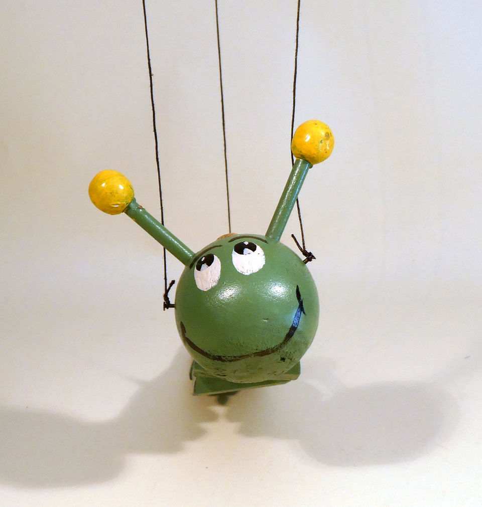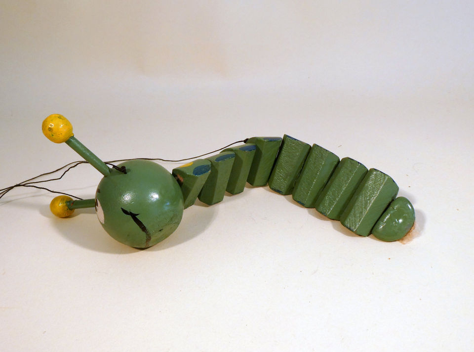 Type LB Caterpillar, early 1950's. This is the first type of caterpillar Pelham made with brightly painted wooden segments.