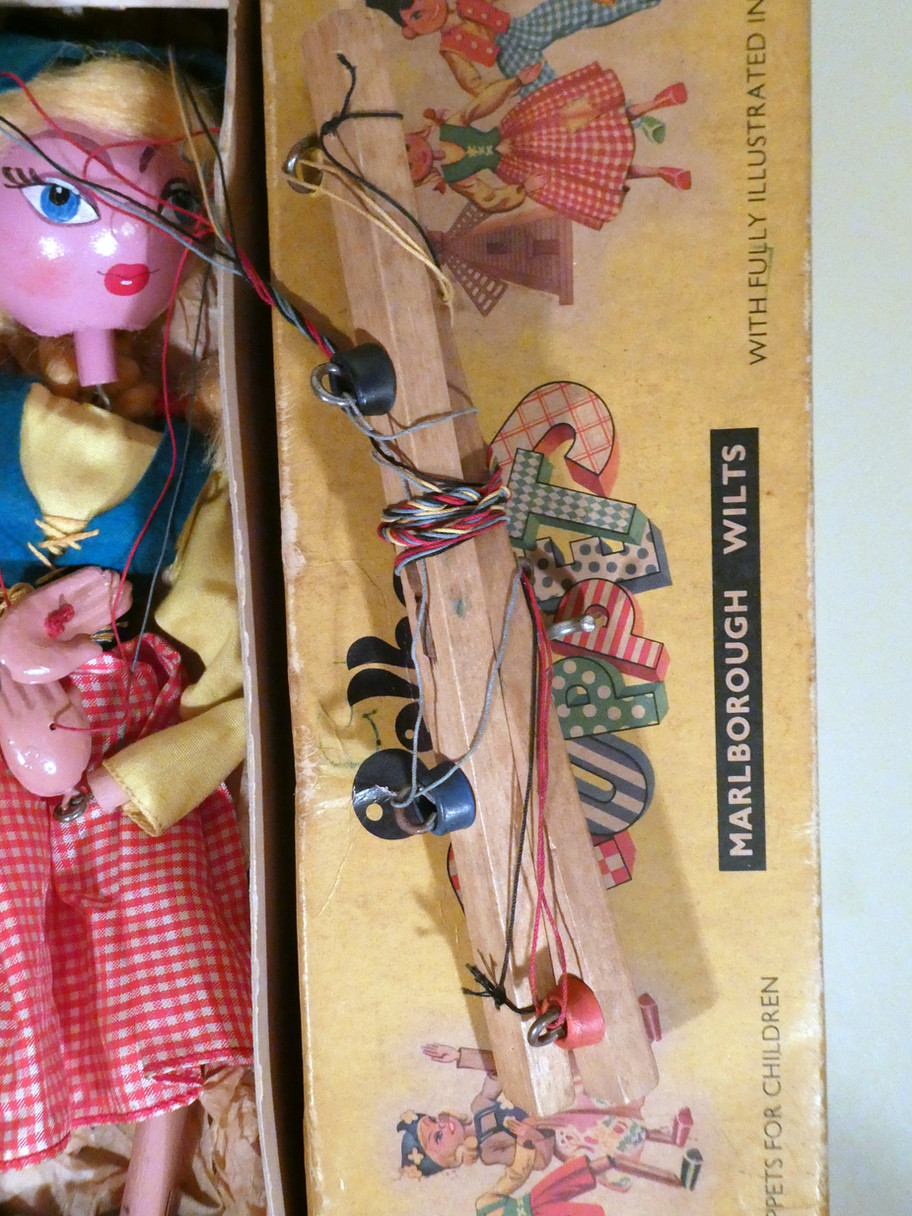 Original box stamped correctly is shelf worn and aged. Base has writing on it.