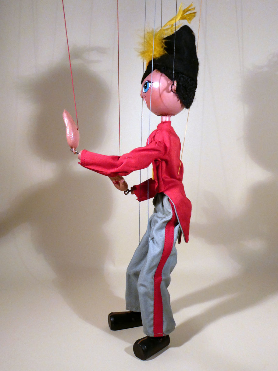 The face paint has paint loss on the nose, otherwise the puppet is good.