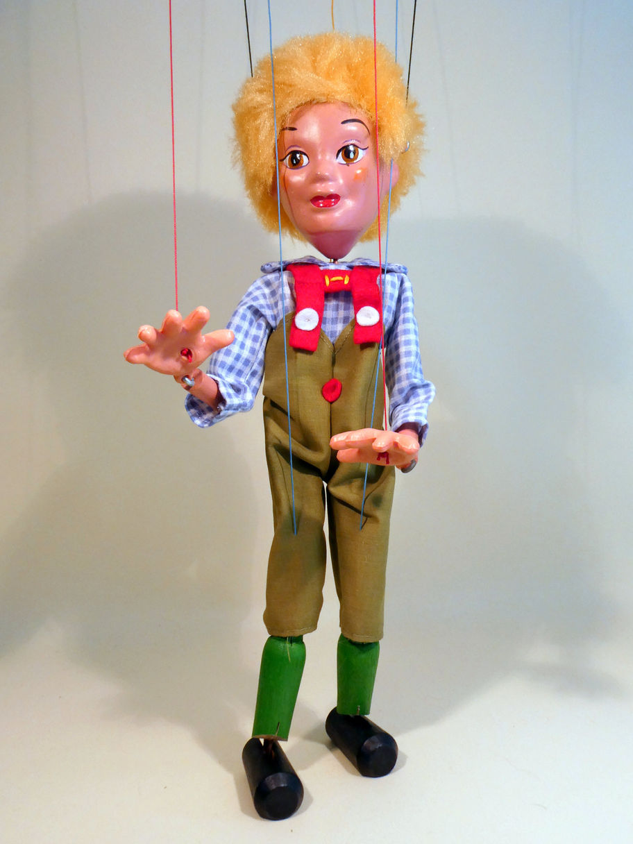 He has sparkling orange synthetic fur hair typical of the late version of this character.