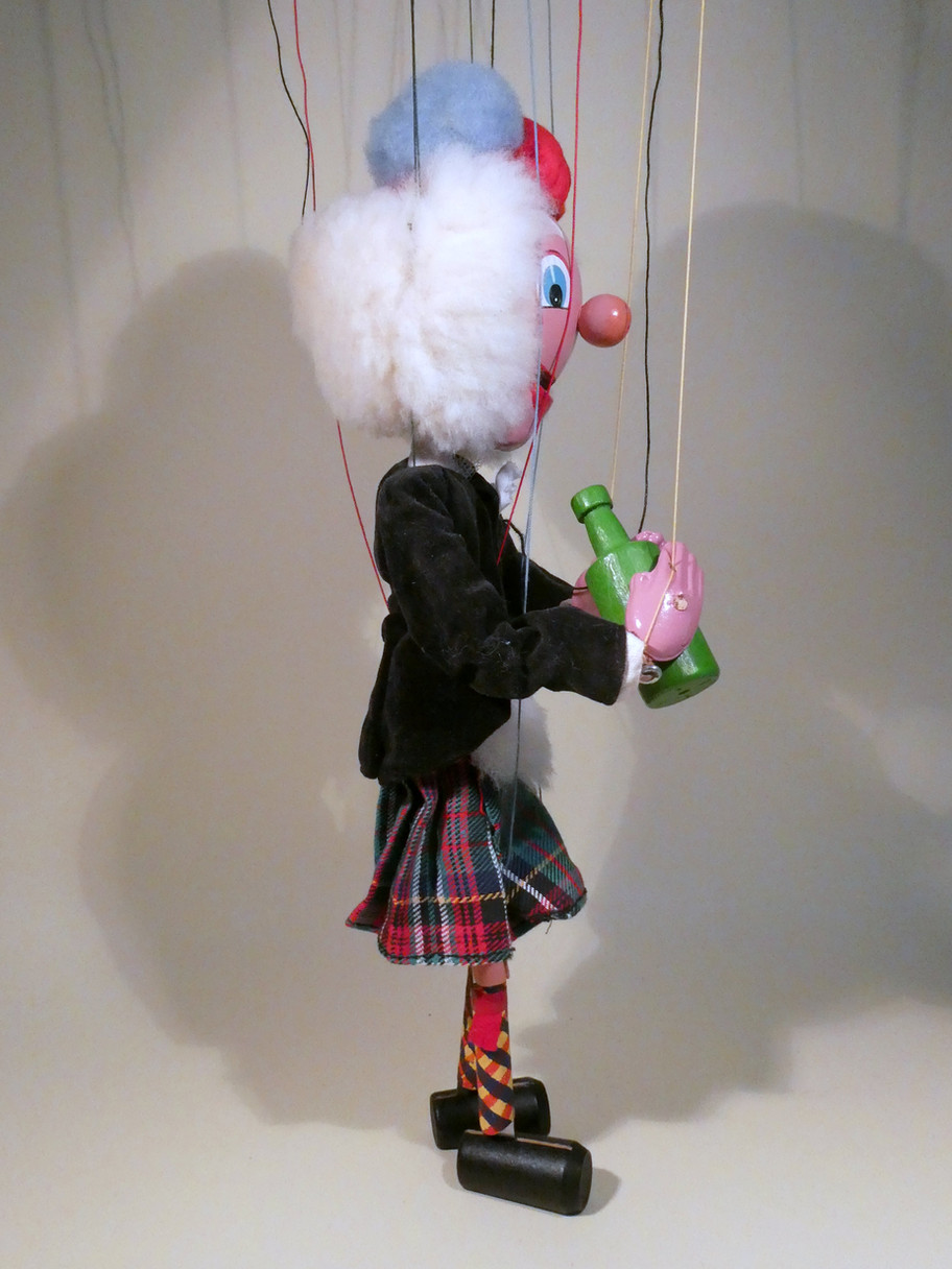 He has good kilt and jacket, the white shirt under the jacket has some minor moth holes, barely seen until looking for damage.