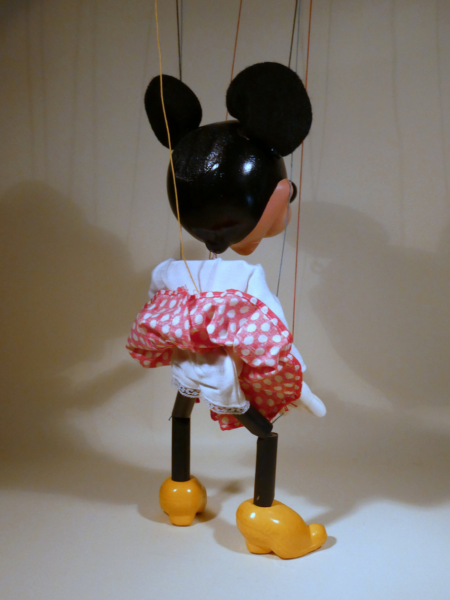 Clothes are clean, she wears white shorts under the spotted skirt.