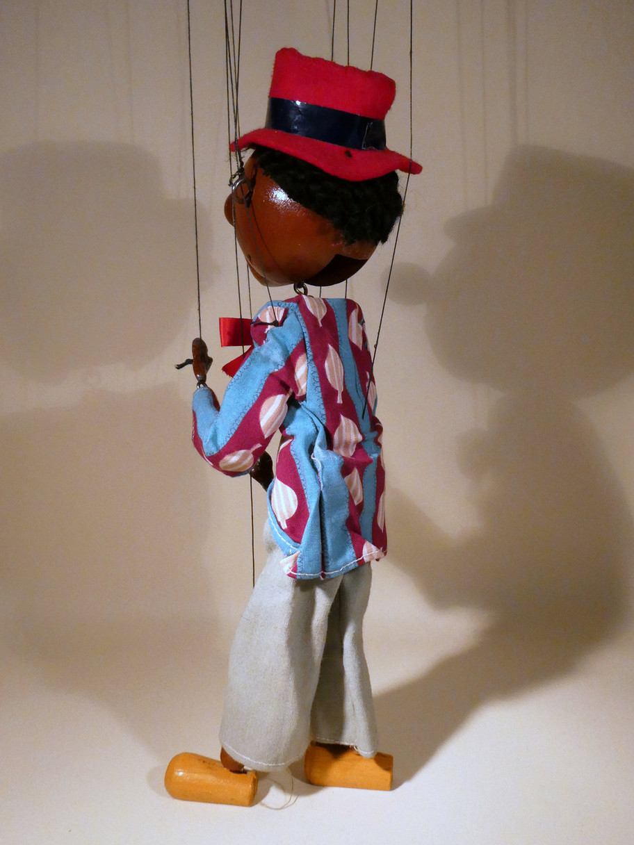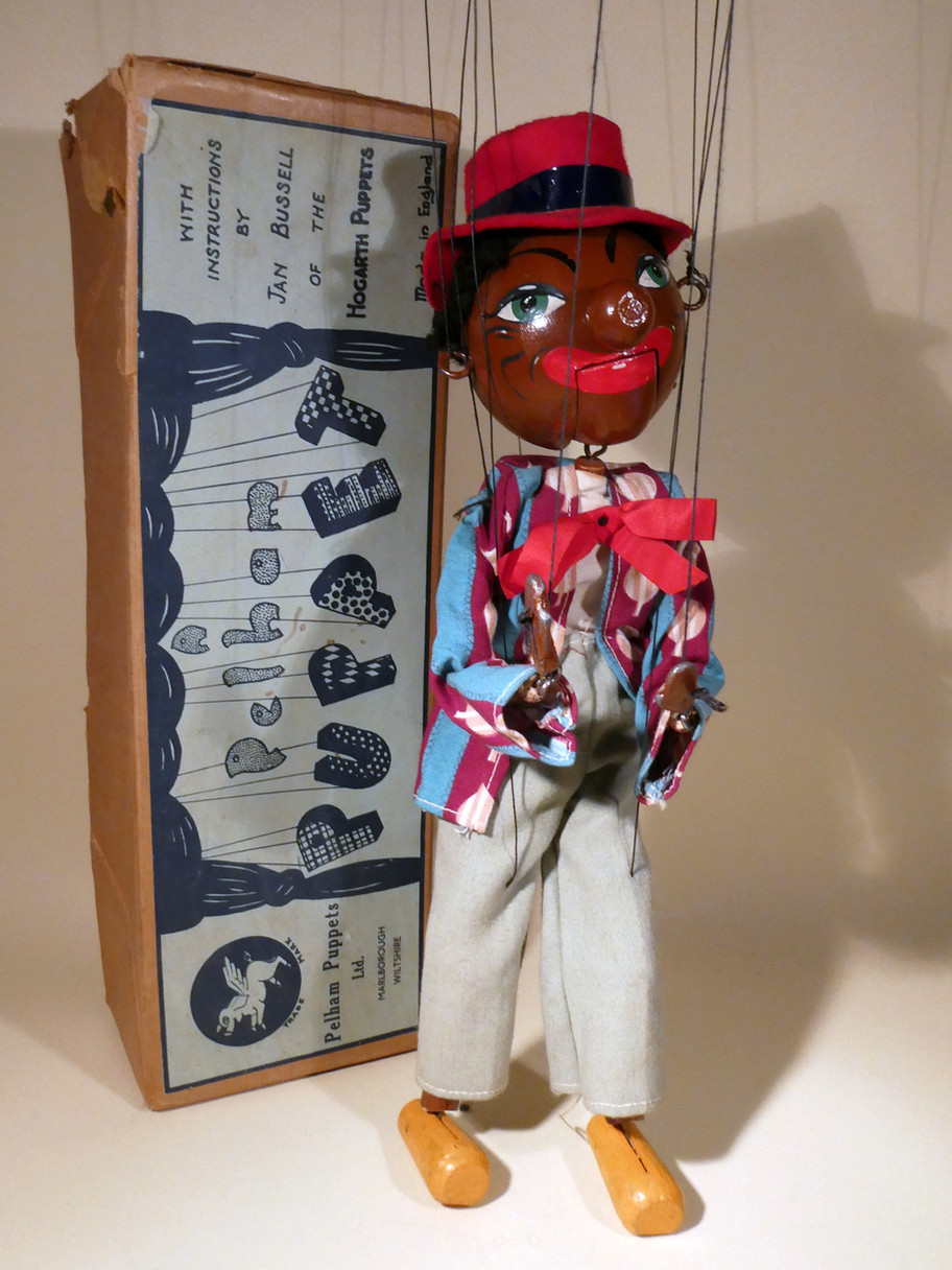 It is one of the earliest minstrels with drop lead hands. The style of jacket slightly different to the 1950's ones with tails and felt buttons.