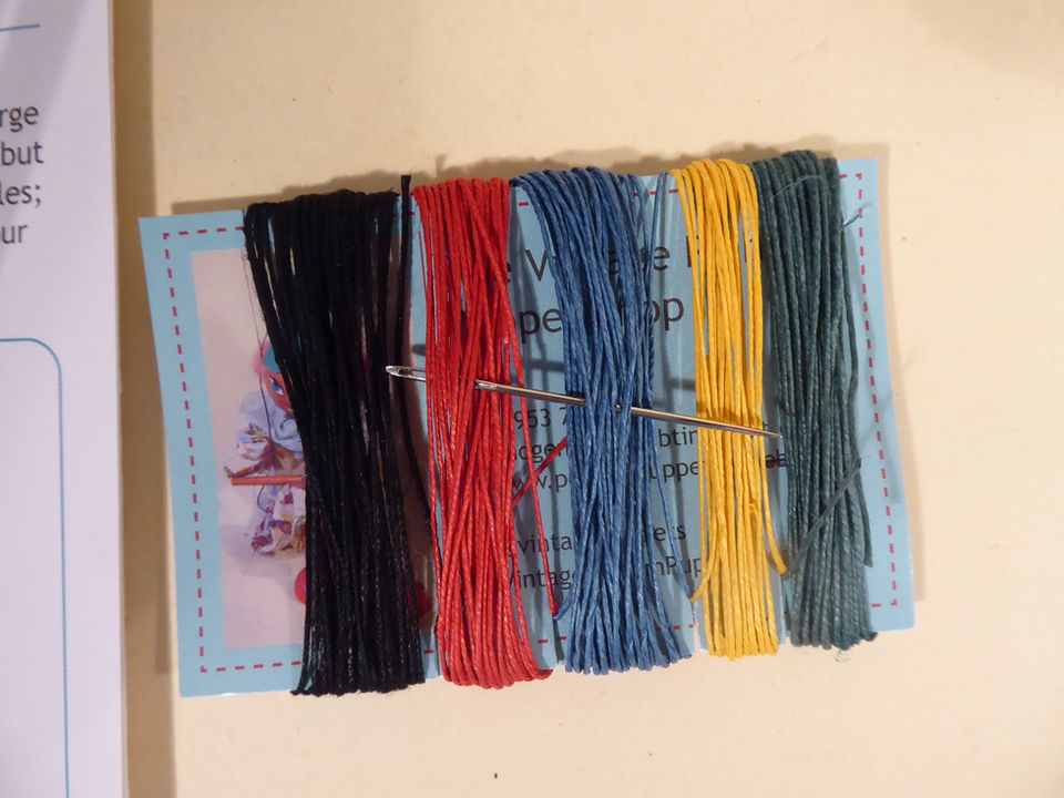 Coloured linen thread, unwaxed. 18/3. The brand is Barbour.