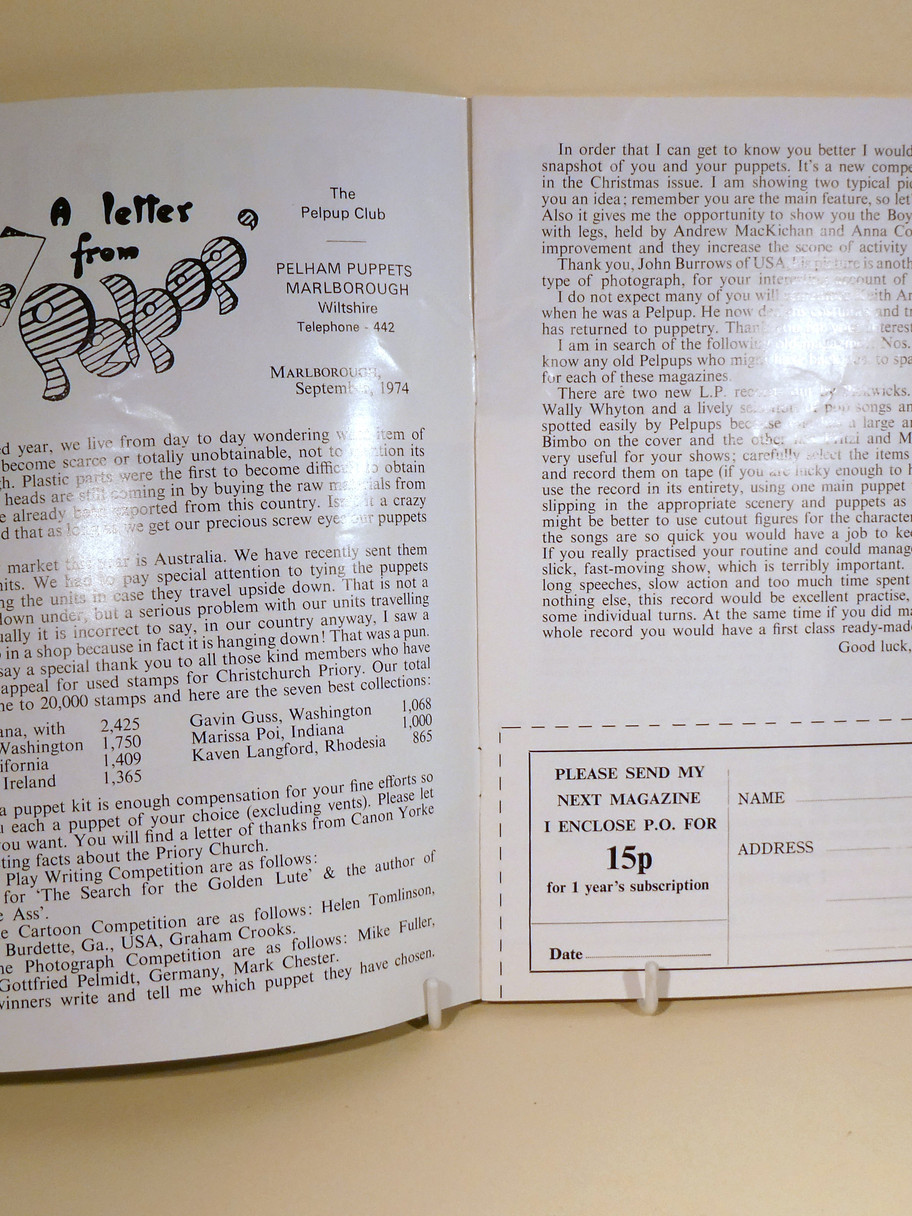 Pelpup News Summer 1974 No 27. Magazine for collectors of Pelham Puppets who belonged to the Pelpup Club. 23 pages of interest, drawings and information.
