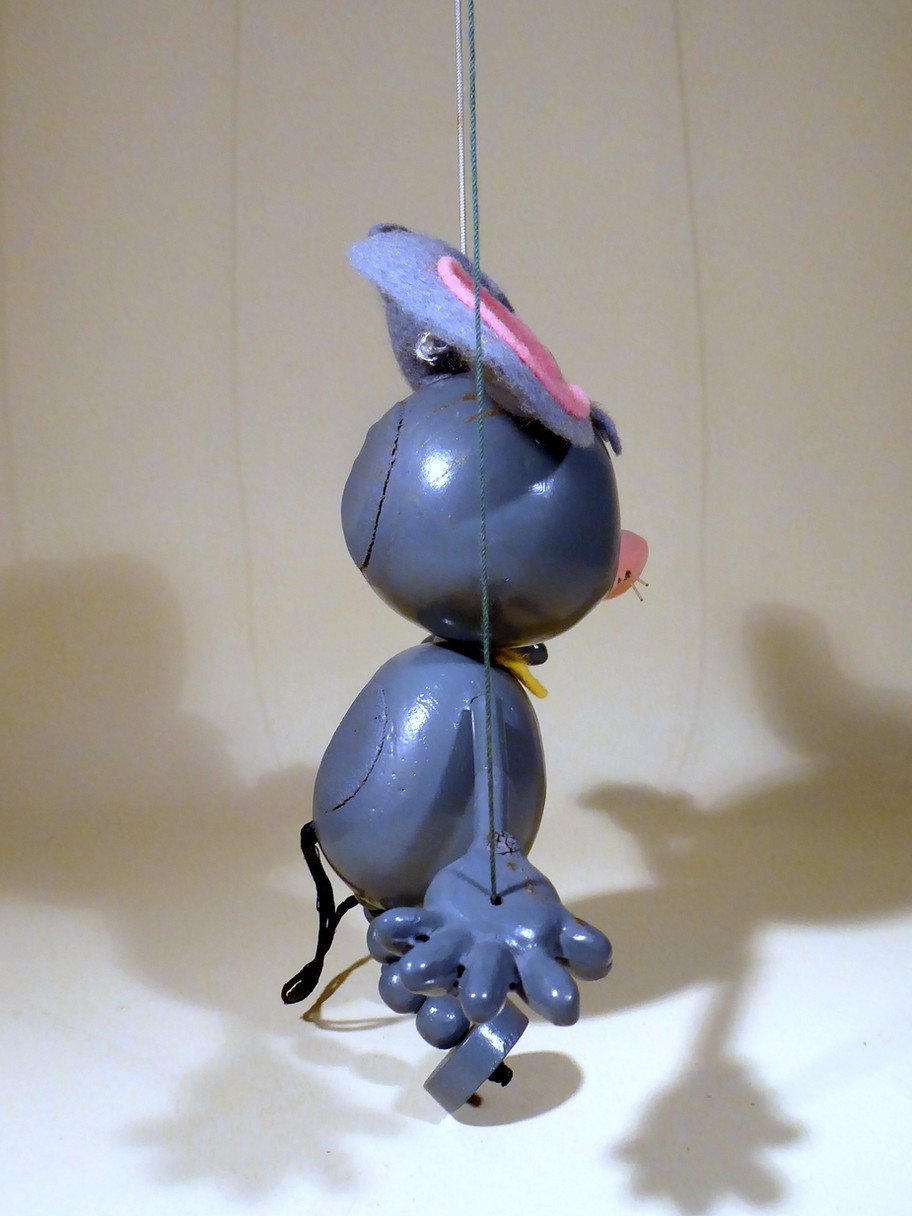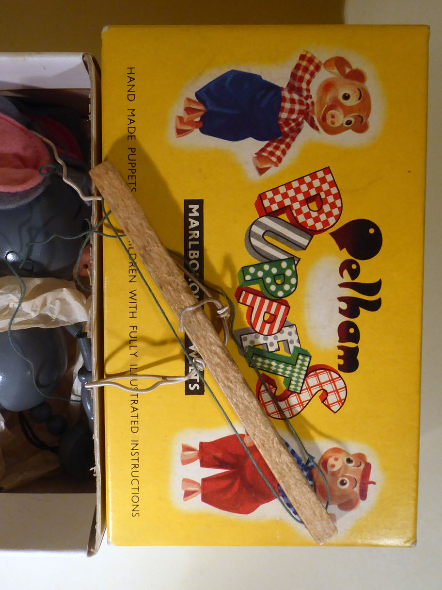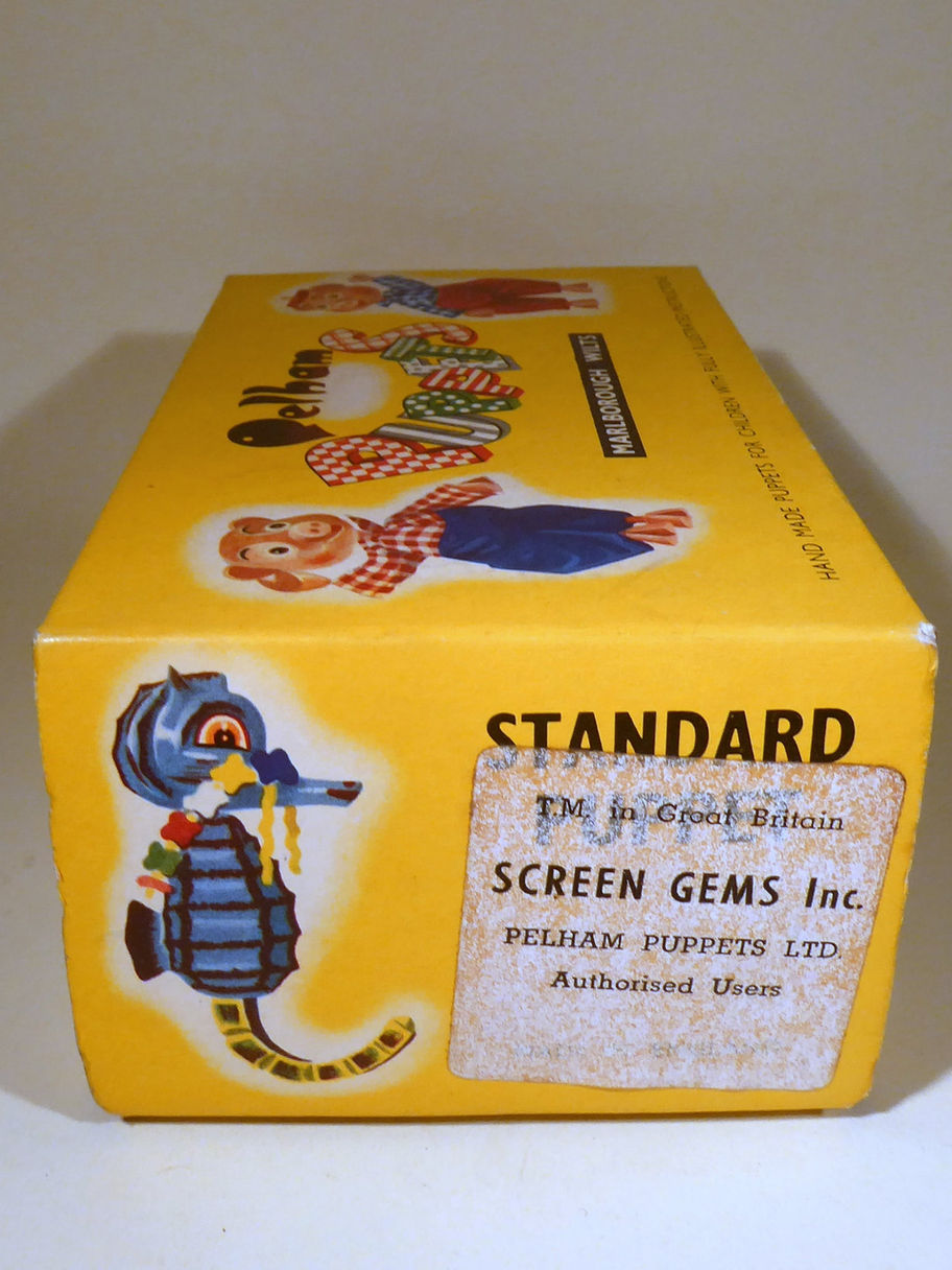 Type JC Pixie one of the Hanna Barbera characters of the Huckleberry Hound show in late 1958 to 1960's. Dixie is the other mouse in the series with Huckleberry Hound, Mr Jinks and Yogi Bear. Pixie has his yellow bow tie and is in very good clean condition. The two felt ears are good. He retains both sets of whiskers. Box is good and correctly stamped, this is the second small animal style box that Pixie was produced with.