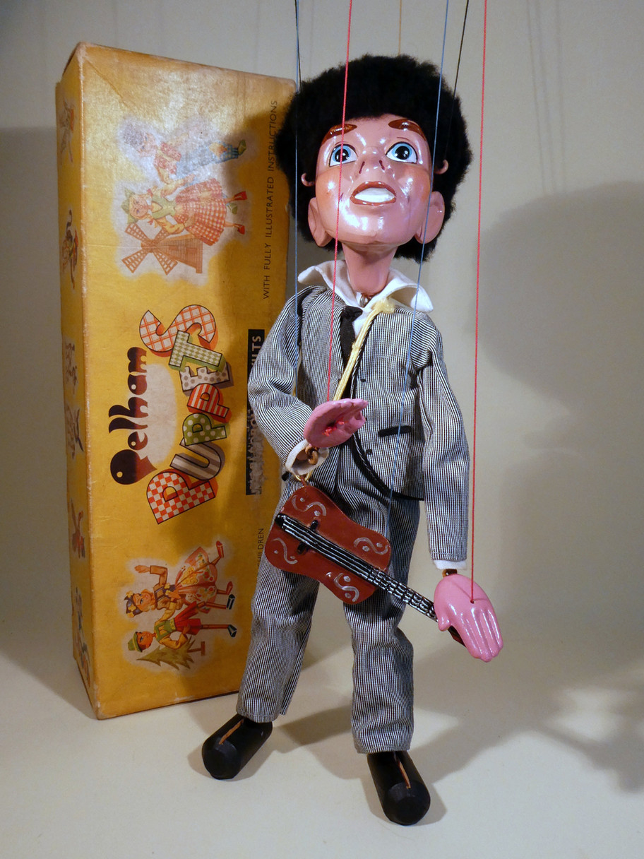 He carries his guitar, there are two guitarists in the group with different head moulds, we have both in stock.