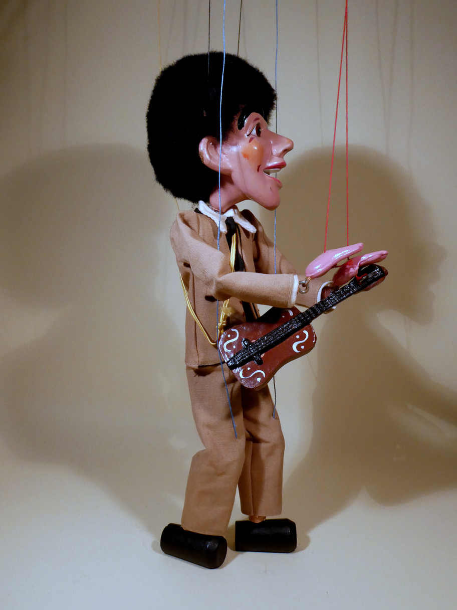 He carries his guitar, there are two guitarists in the group with different head moulds, we have both in stock.