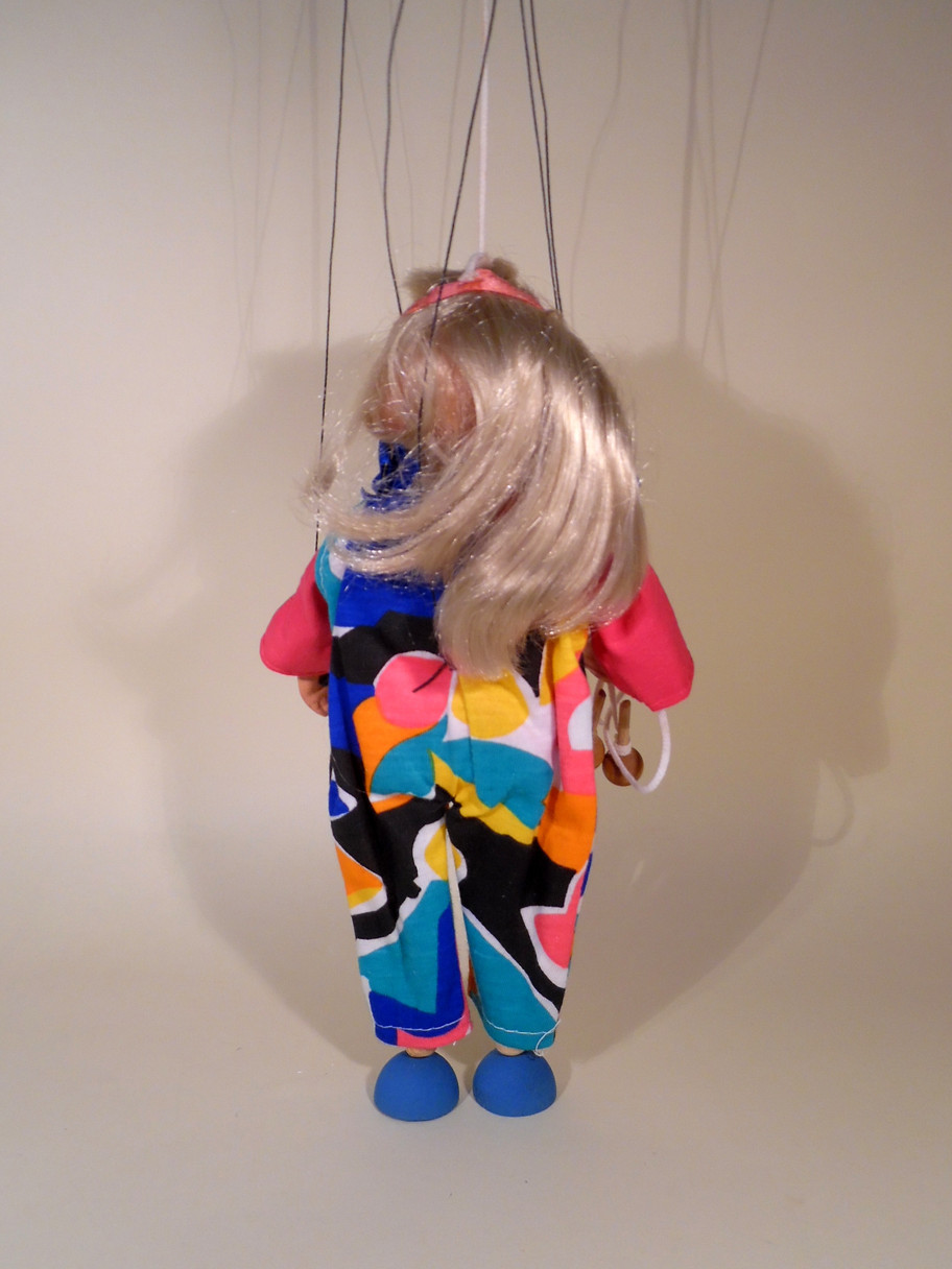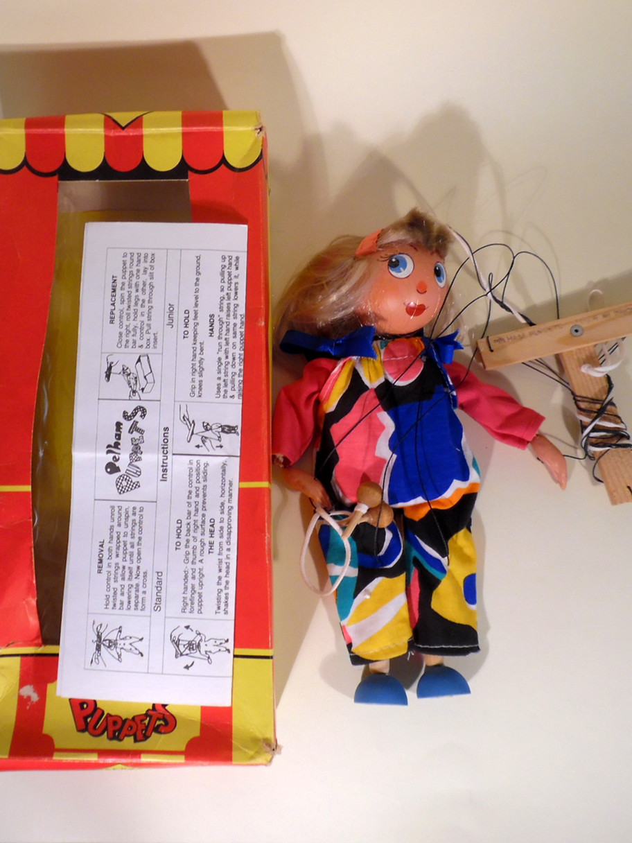 Type Junior Control Girl with skipping rope. She is a rare character from 1980's I believe. She looks unused, clothes are clean and fresh and she carries her little skipping rope with wooden handles. Box is tatty and includes a set of instructions.