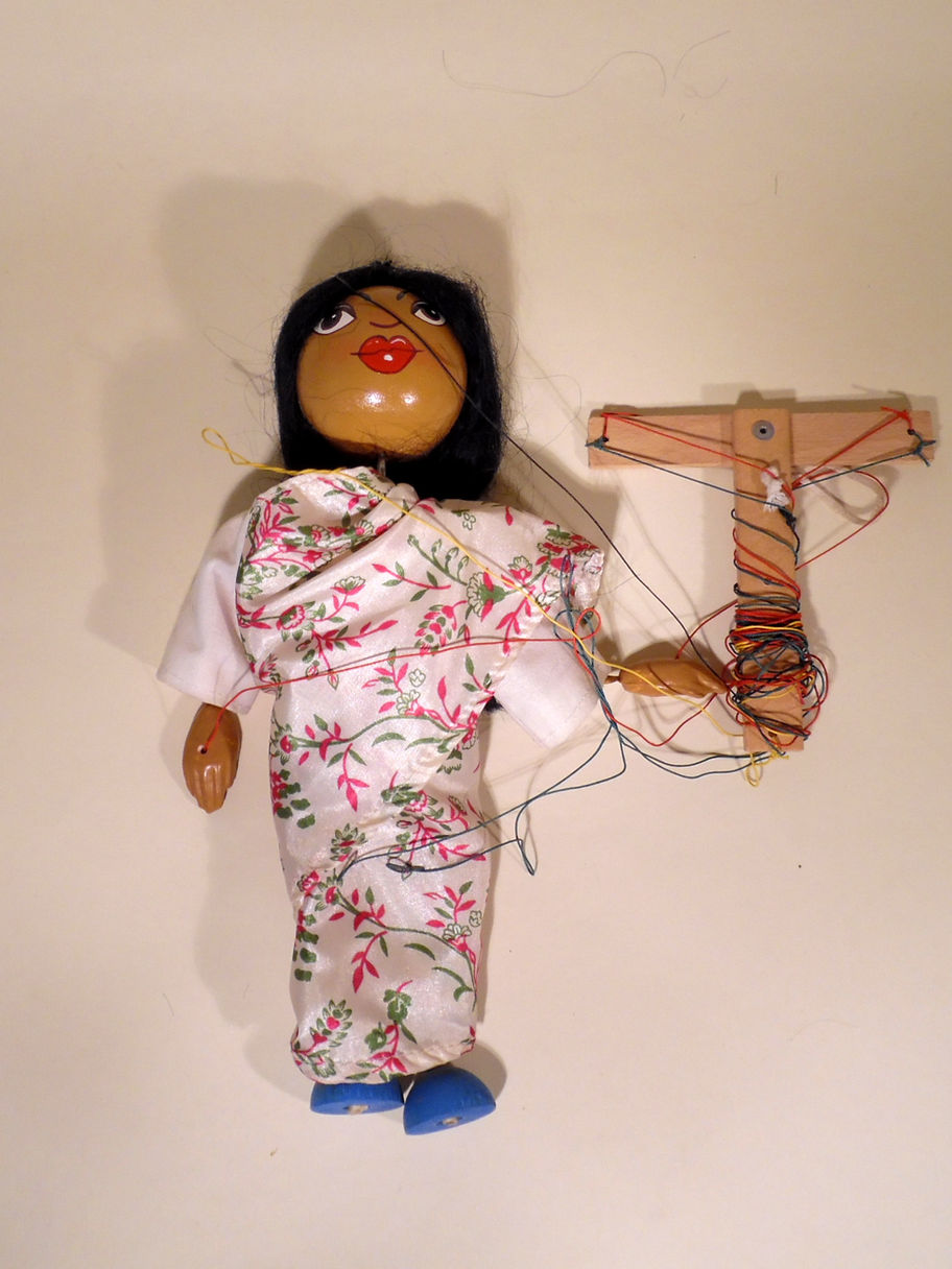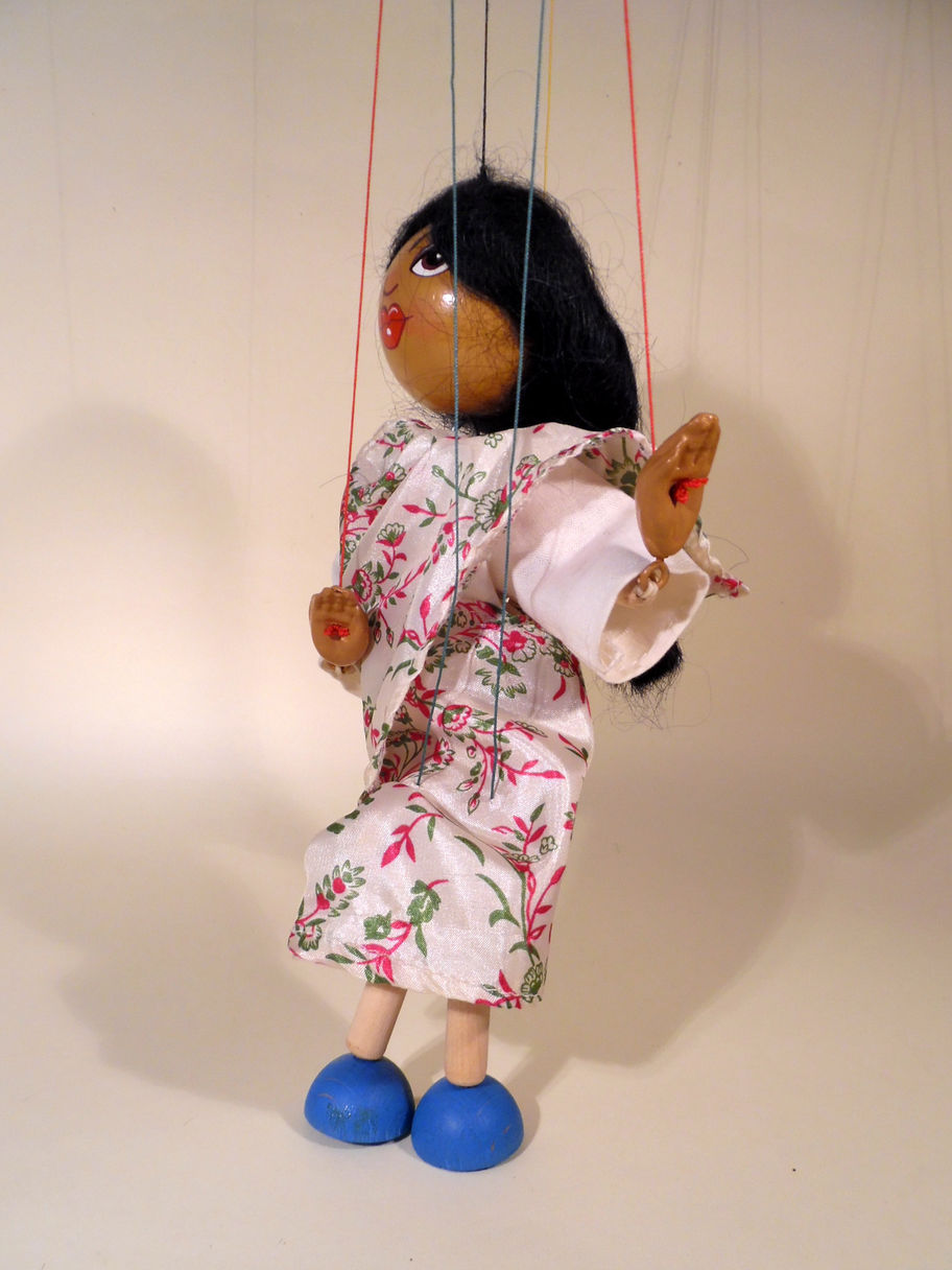 Type JC 'Family and Friends' range Indian Girl, 1980's. She looks to have been restrung with longer threads. Clothes are in good condition, she wears a sari. Strung on T bar control. No box.