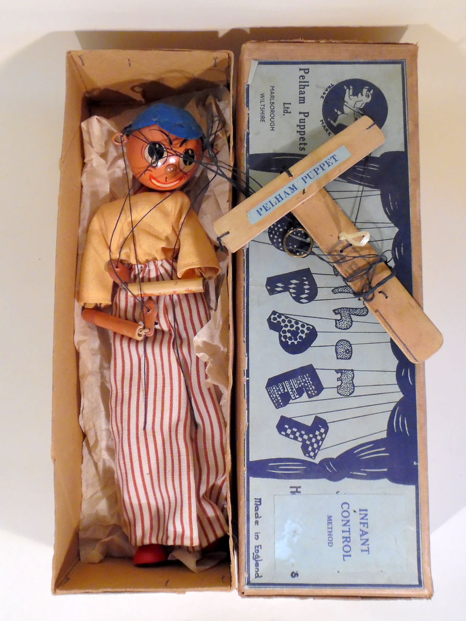 Type LS Wonky Schoolboy. He is in very good condition with a little wear to the clothes. He has large bamboo limbs and small lead hands. Box is good, a new hanging loop has been applied.