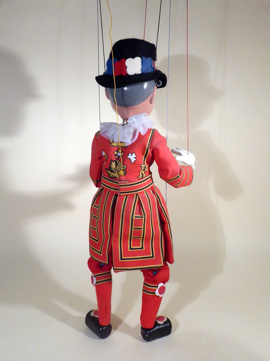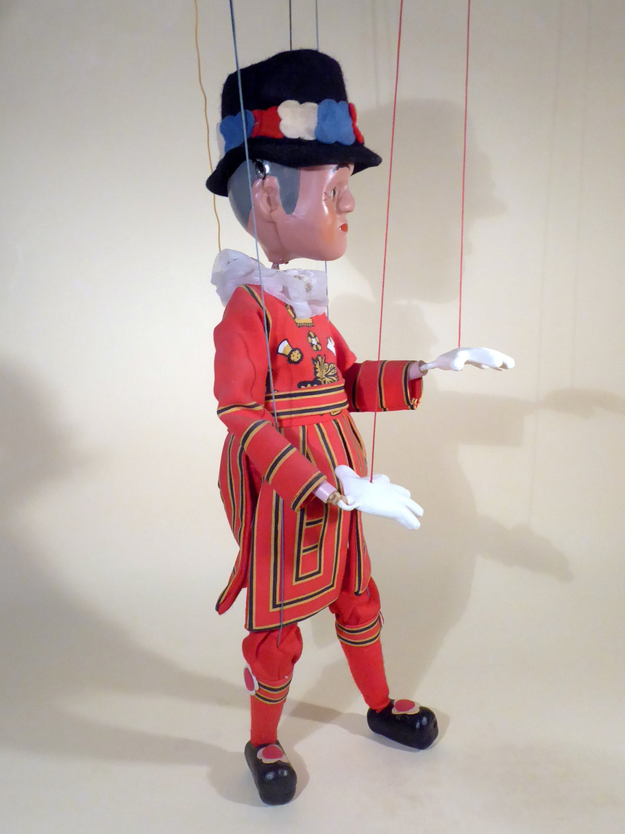 Type SL Beefeater dates to 1980's having been introduced in 1981. He is in very good condition with all felt flowers still attached on the hat and shoes as buckles. Box is shelf worn with the top bar damaged. It has no cellophane attached.