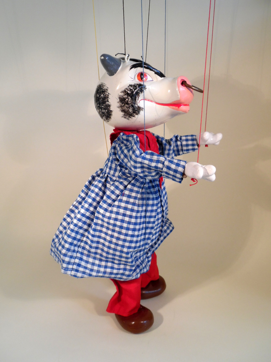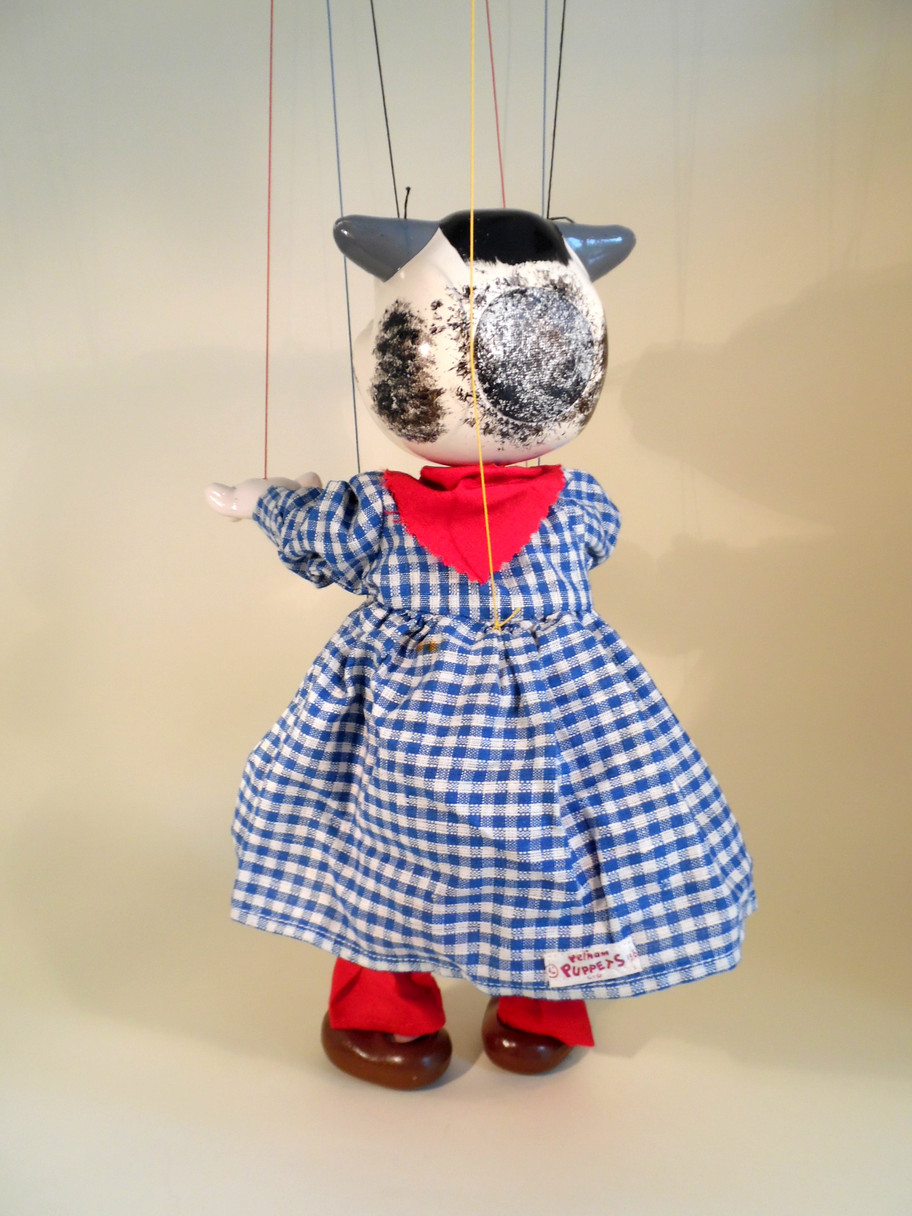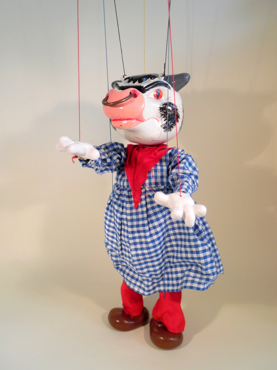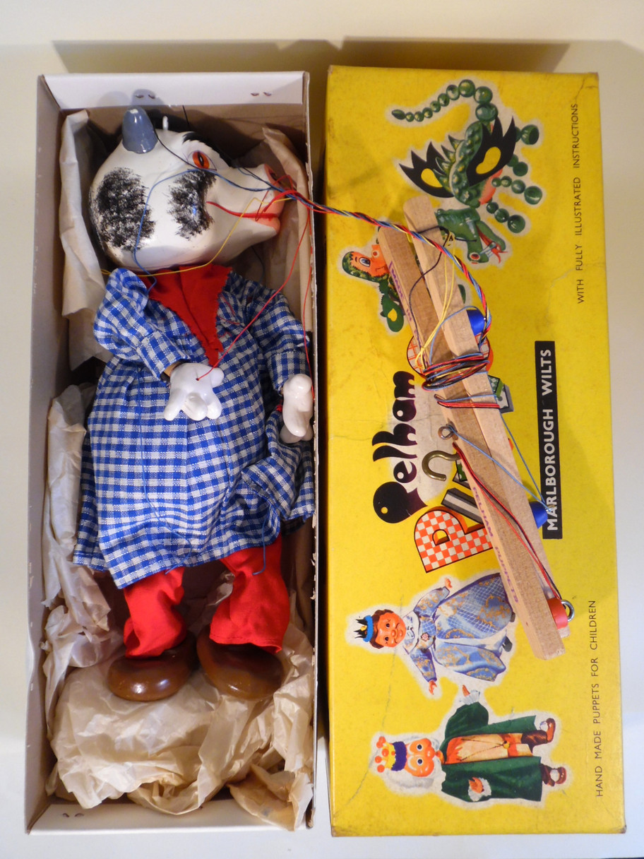 Type SL Bull 1963 Tagged in excellent condition. The only mark I can find is a small rust mark on the back of the smock. He has the 1963 material label sewn onto the smock. The ring still in his nose. The box is stamped Bull and in very good condition. A set of instructions also included with letter portion uncut.