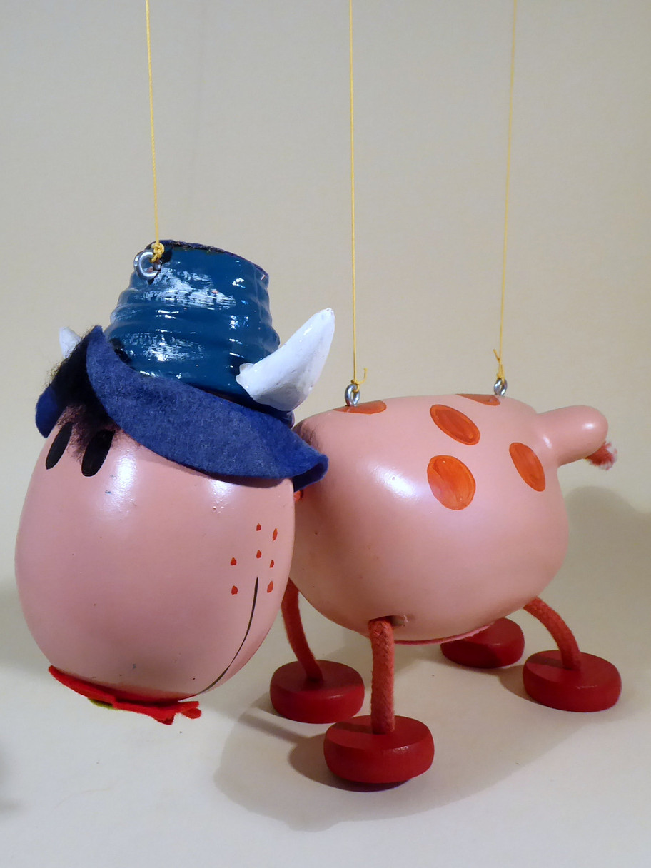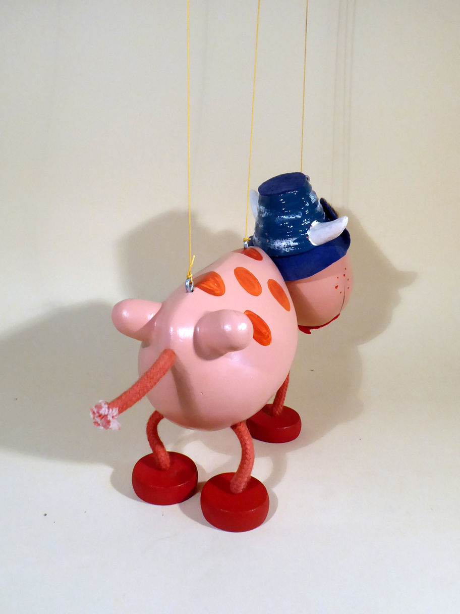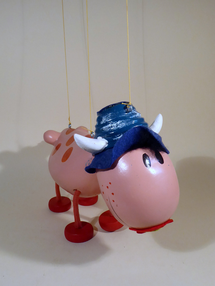 Type SL Ermintrude the Cow from the TV series The Magic Roundabout. He is in good condition. This is the first version Ermintrude, later types had strings to the legs. The felt flower in her mouth has a tiny bit of damage as shown. Box is correctly marked one end with the name stamp and copyright sticker the other end. Instructions included.