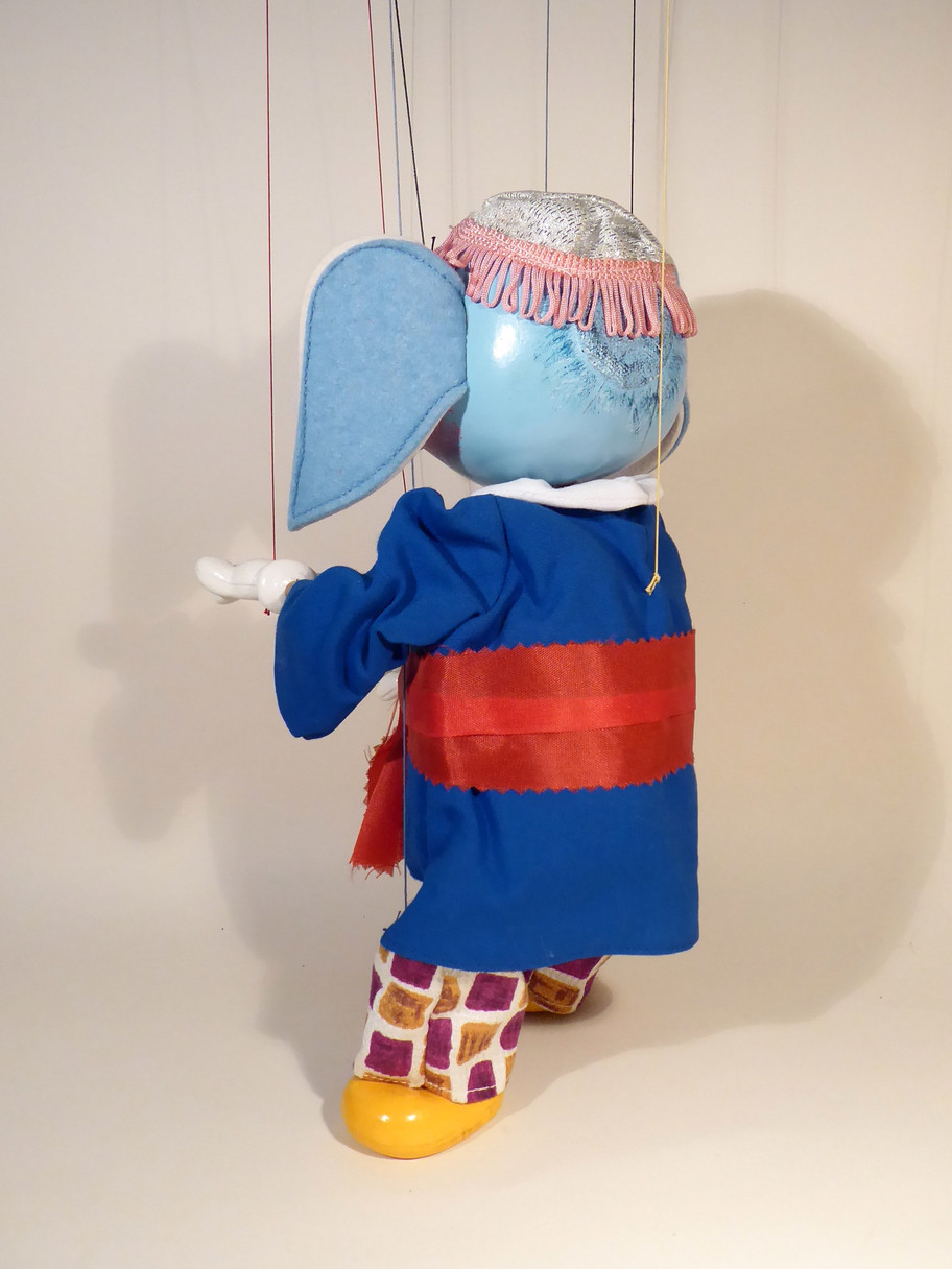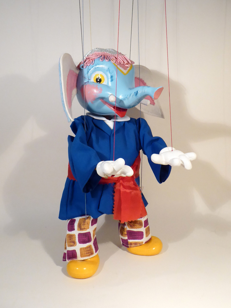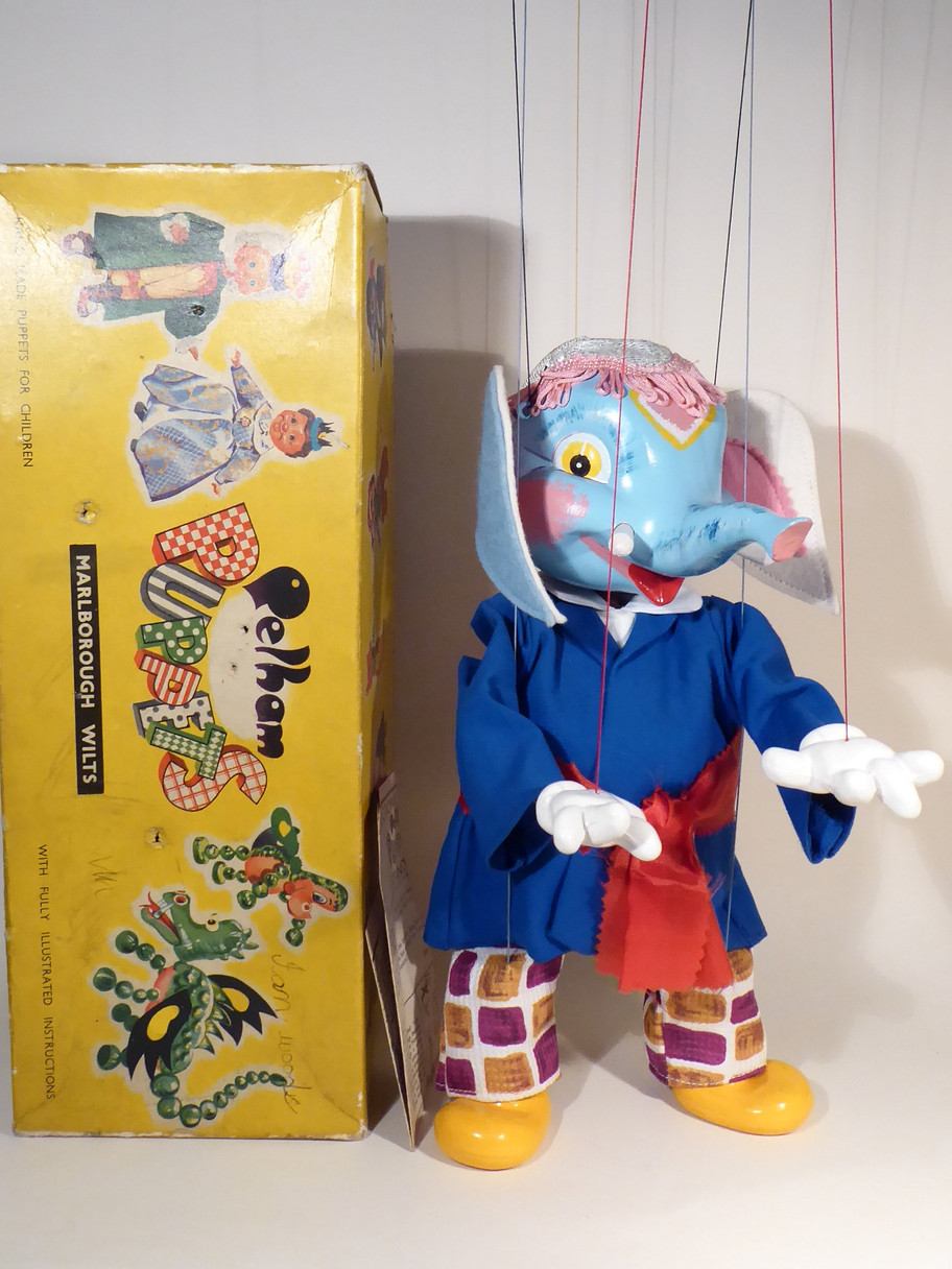 Type SL Elephant with 1963 label. He is in excellent clean condition with no flaws I can see. Clothes are crisp and clean. The felt ears are clean and bright and face paint is very good with no damage. The 1963 tag is sewn into the tunic seam. The original box is aged with wear but has the correct name stamp one end. Instructions with letter portion removed are included.