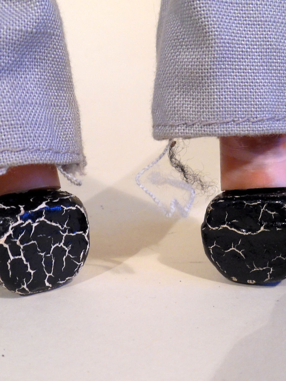 Type SL Pop Singer, Drummer. Puppet has a mop of good hair and face is good. He does have some marks under his chin which could be cleaned probably. The shoes are aged/damaged by age. please see image. He is missing one drumstick. Box is shelf worn and has a faded end stamp. Set of instructions included.