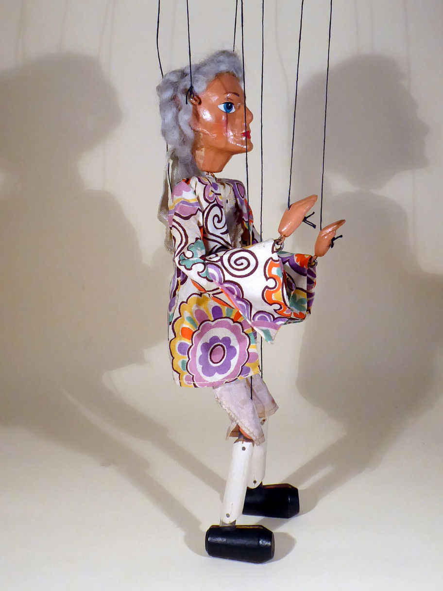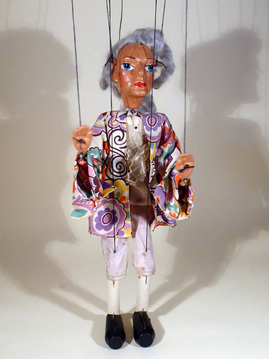 Type SL Prince Charming early 1950's. He has a good face but his hair is very shabby and needs a restyle. The jacket is very good with no damage and the satin trousers have age related marks. Box is stamped Tyrolean Girl but is the correct type of box for this SS Type puppet.