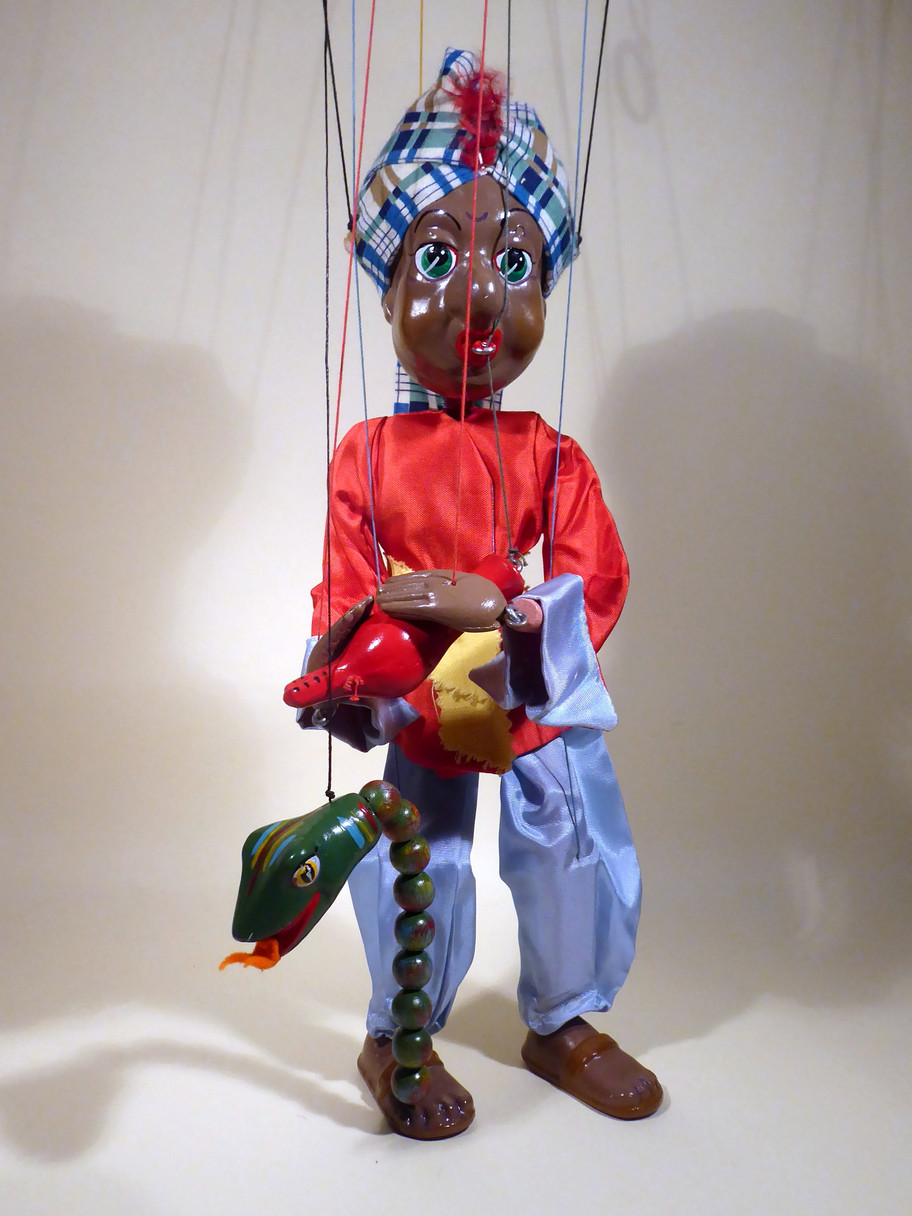 Type SL Snakecharmer complete with snake and flute. He is in good condition. He has a good turban with feather diisintegrated as often happens. He has good clean clothes with no damage. The snake has the felt tongue still attached. Box is good with cellophane still attached to the sleeve.