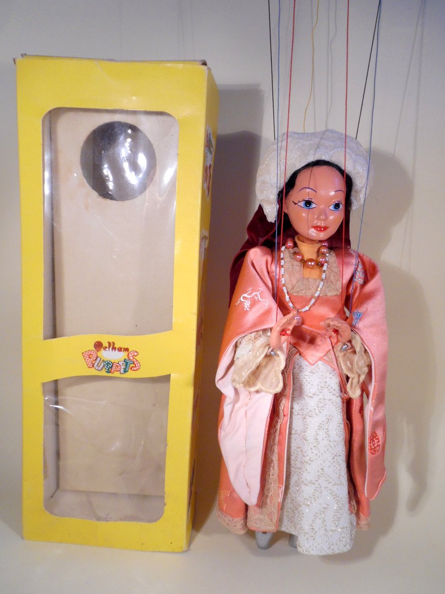 Type SL Special Lady in good condition. This character with dark hair. The costume is made from thick good quality materials. She has ballet shoes and an underskirt with a Pelham label sewn into her lining. The original box is stamped 'Special' one end. The cellophane is damaged.