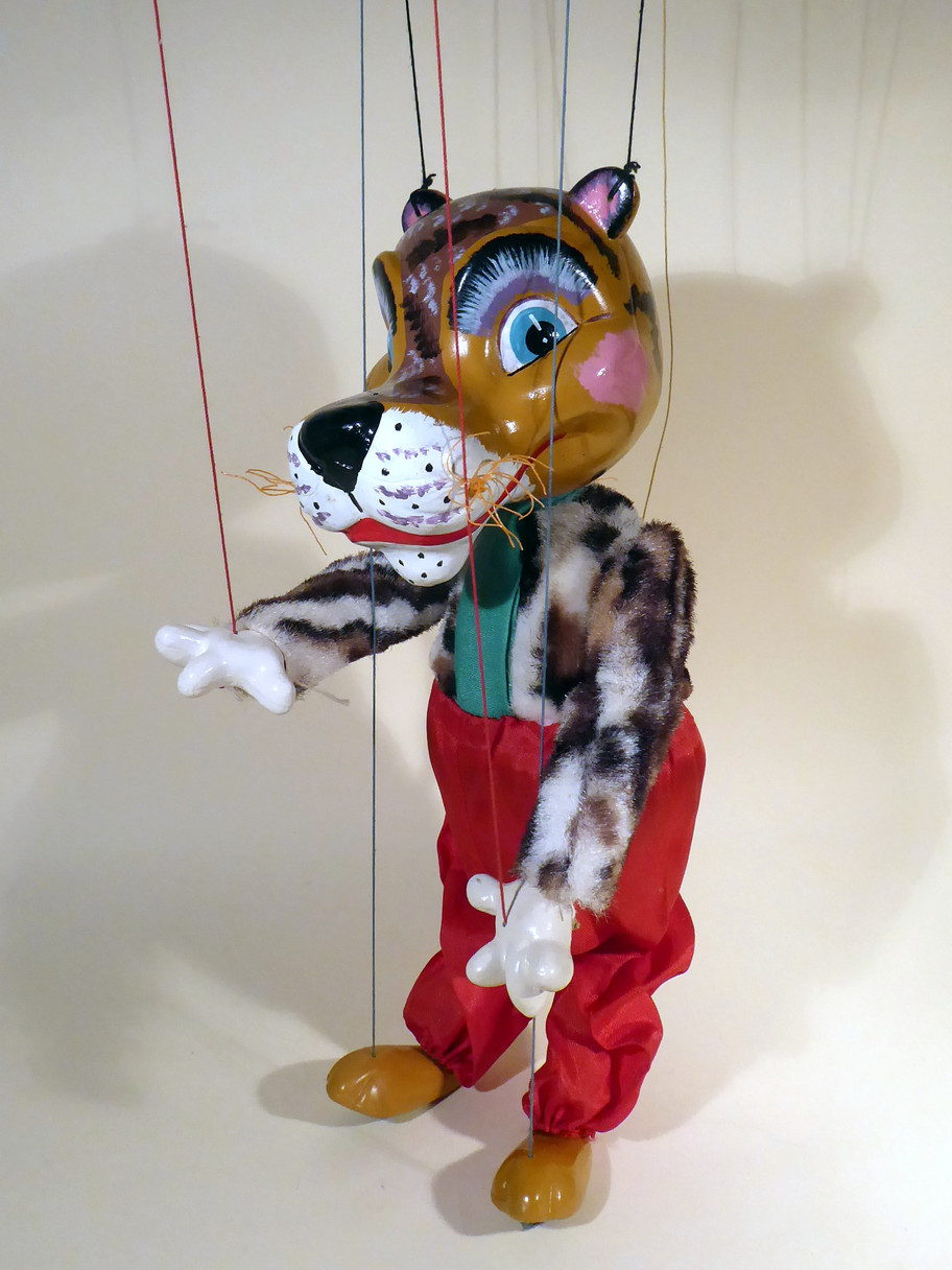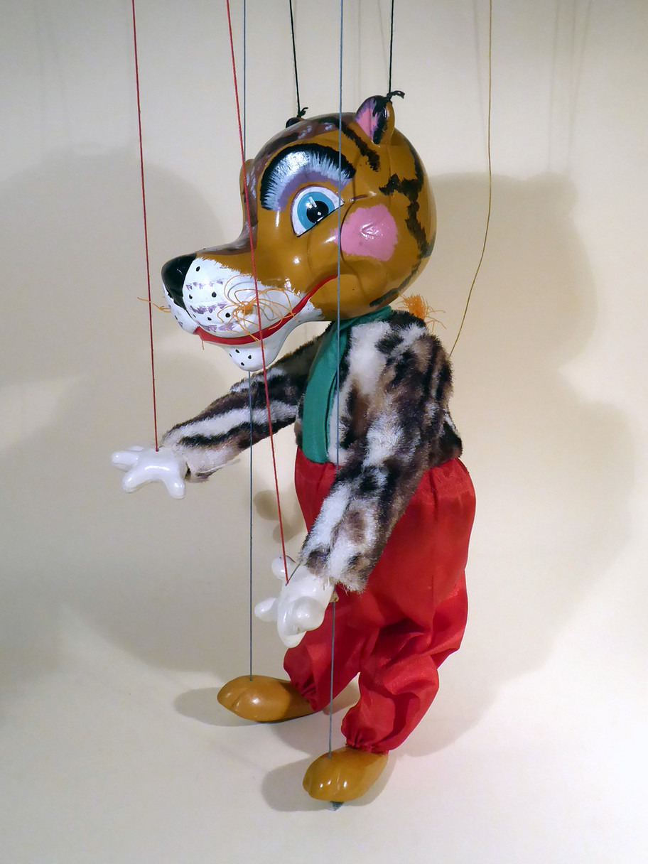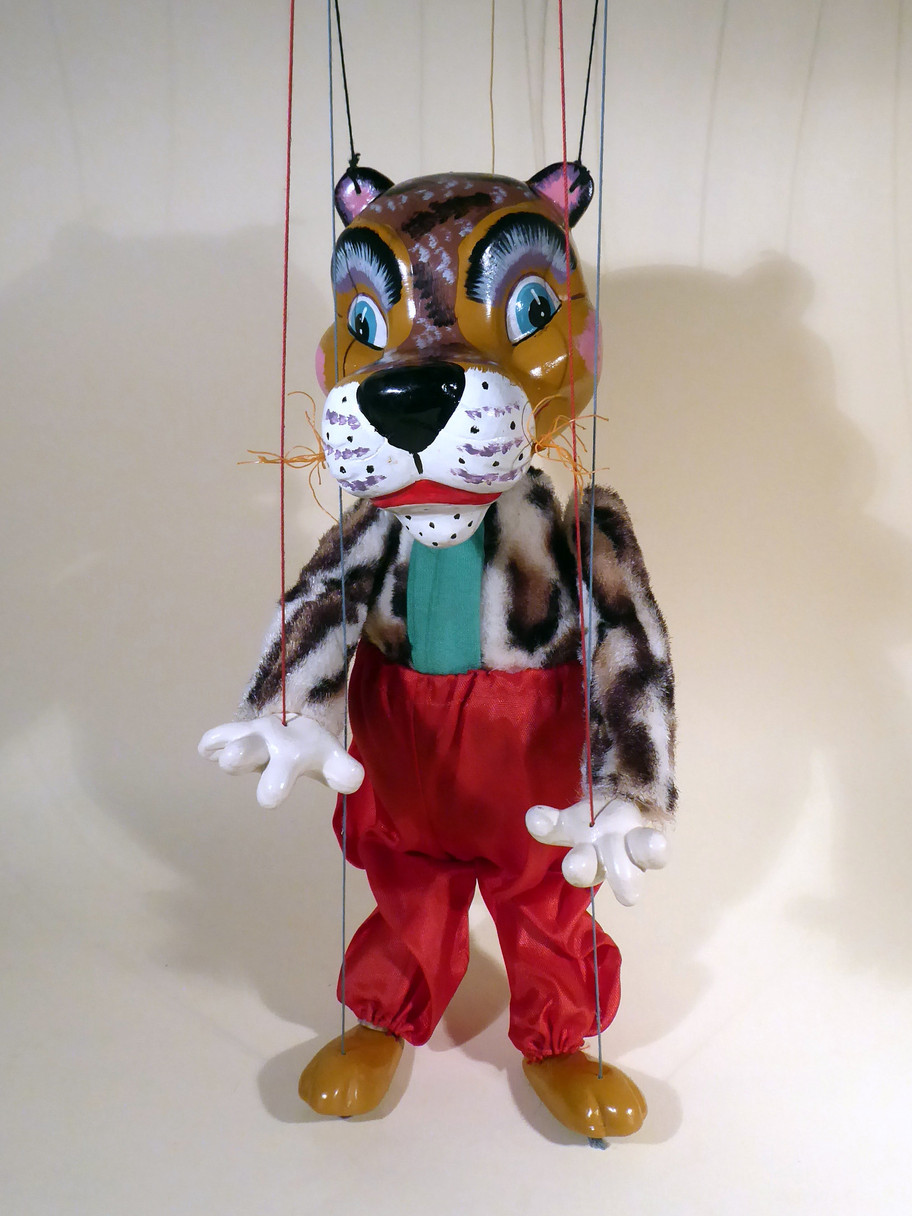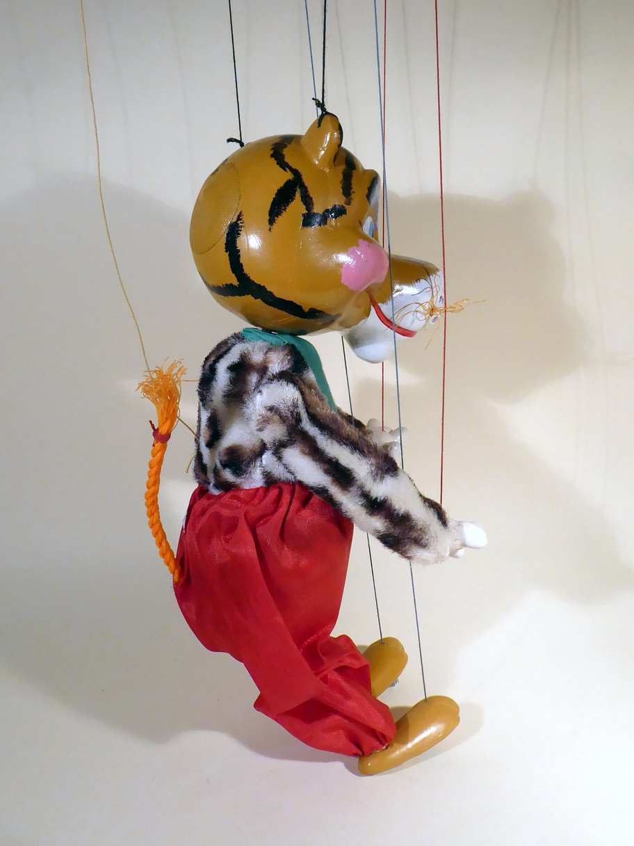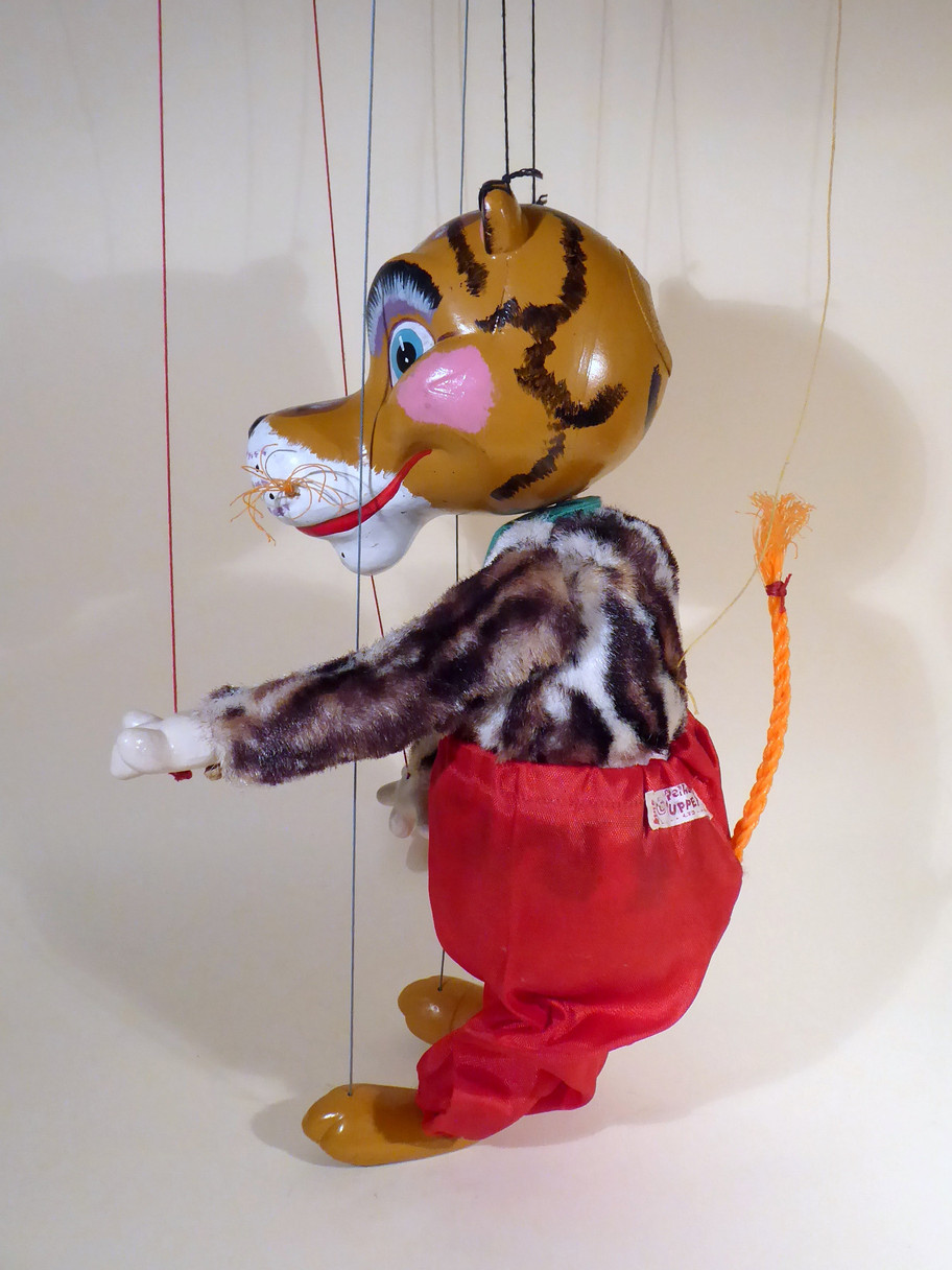 Type SL Tiger, one of the rare 1963 designed characters. Tiger is in very good condition, the trousers have no damage and he wears his green scarf tucked into the trousers. I think it is sewn inside as it doesn't seem to move. He has very good fur and strong face paint with no rubs to the black nose. He has his orange rope tail and whiskers intact. The Tiger fur is in very good condition. The 1963 copyright label is sewn to the back of the trousers. The original box is in aged and shelf worn condition and includes a set of instructions.