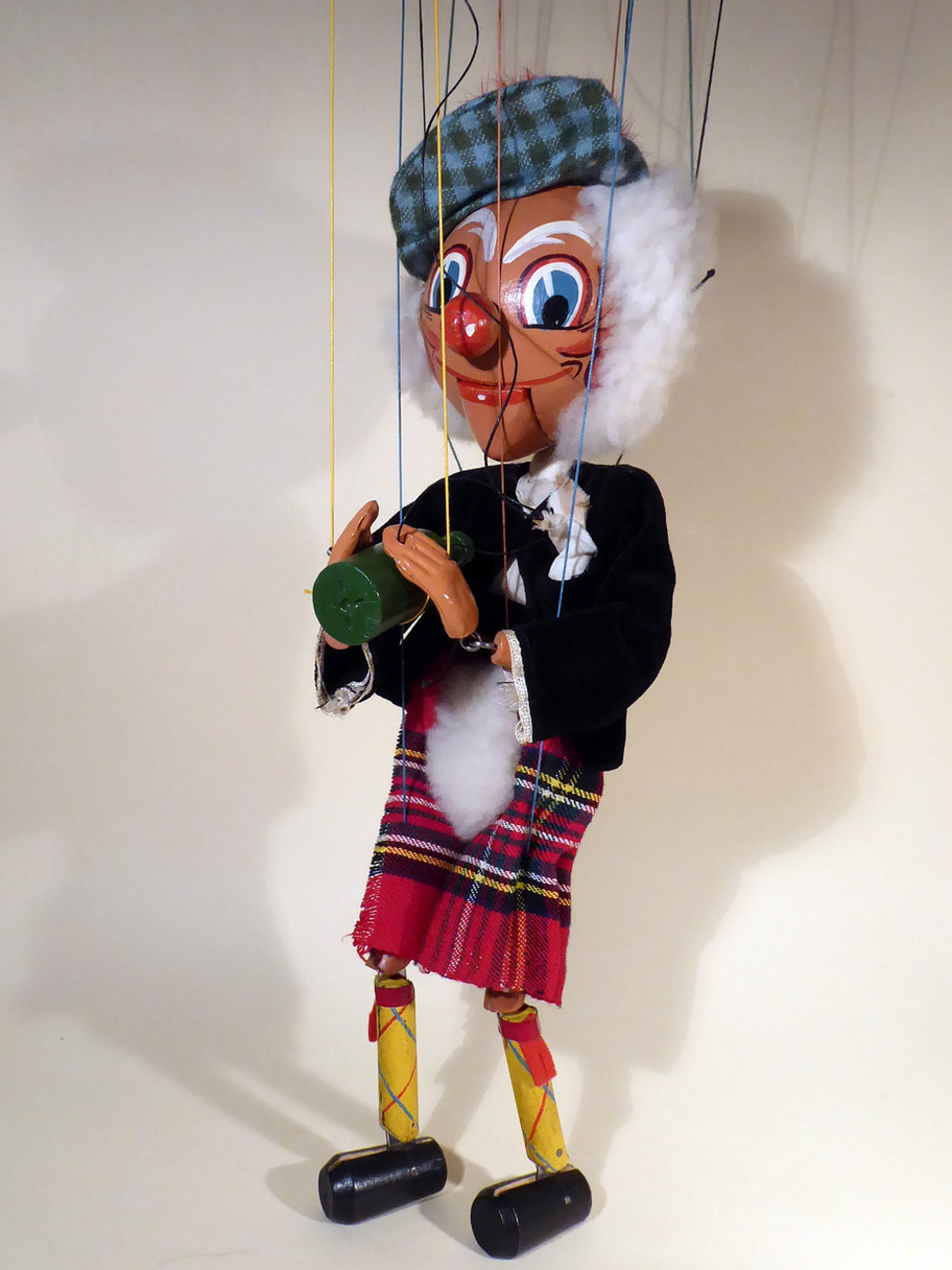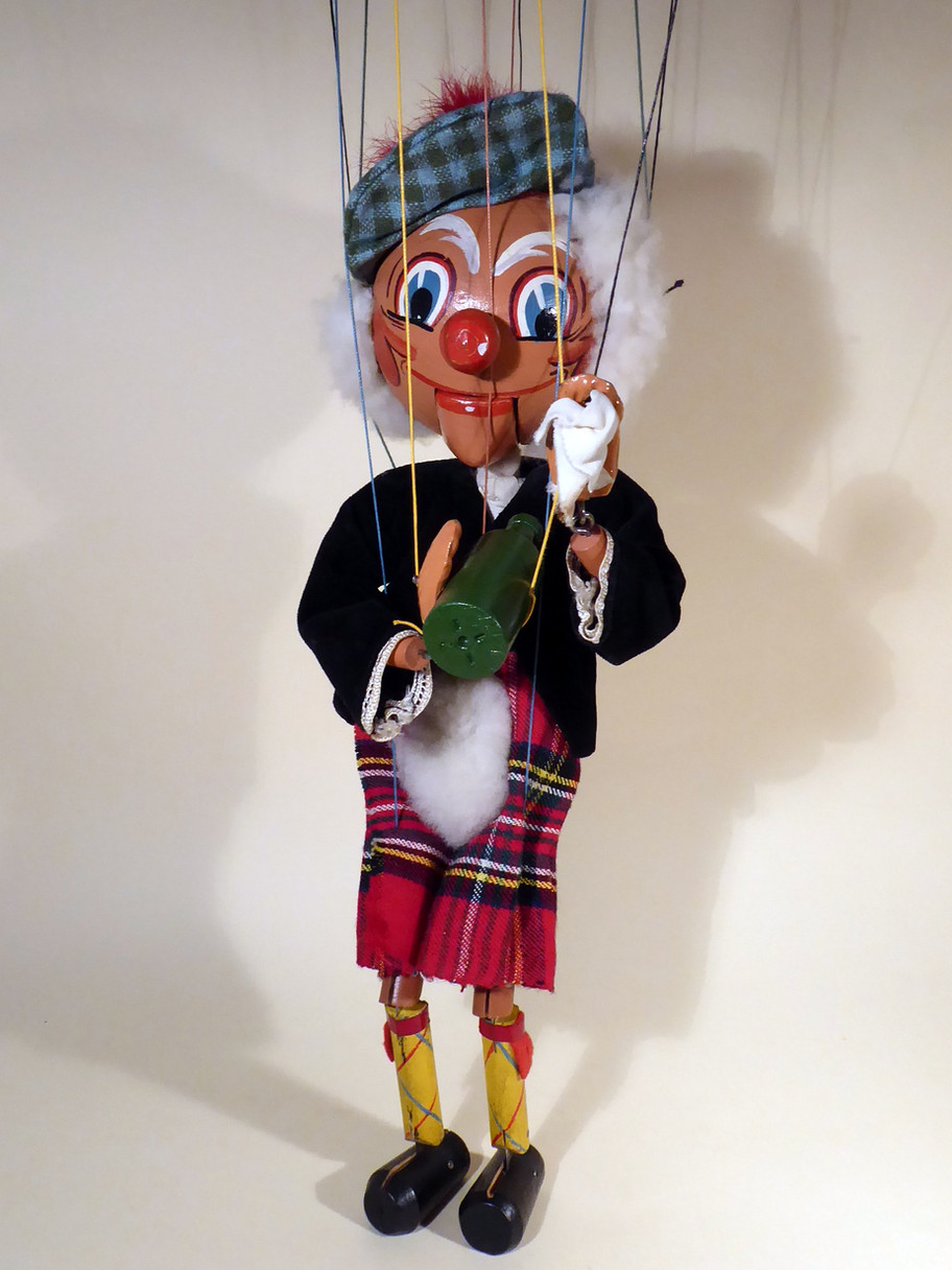 Type SM MacBoozle 1950's era. He is in lovely condition with bright face paint and bright clean clothes. He has his bottle and hanky intact. The beret with pom pom on top is in an unusual fabric, sometimes these are felt and less often fabric. The box is stamped correctly and is in good condition. Instructions included.