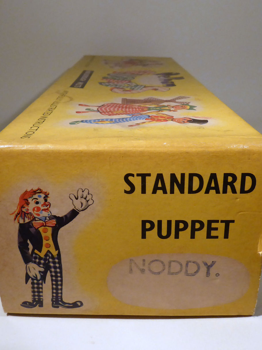 Type SS Noddy 1950's. This is the smaller head type and is in immaculate condition. He came to the shop from his original owner and has always been kept safely wrapped. The puppet is excellent allround. Box is good with instructions included. We have another Noddy the same type also available, both have arrived as single items from original owners in the same week! If you like Noddy, we have a vintage badge available on the Toy page.
