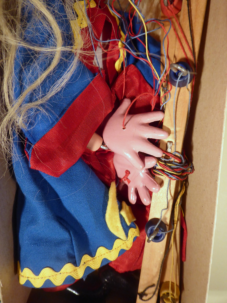 Type SL Wizard 1963 Tagged, this one has the royal blue coloured cloak. It can be found with a black cloak. Condition is very good, the long white hair sheds which is normal ageing for these type of characters with long hair. He does have minor damage to one finger on his right hand underside. Image shows it. Clothes are good with no damage. The felt decorations are still attached. Box has the stamp on one end. Instructions included.